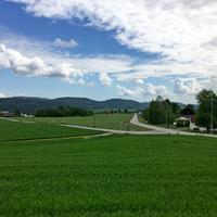 Lindumveien foran, Togtunnel med dobbeltspor midt i bildet. Bildet tatt fra Lindum.