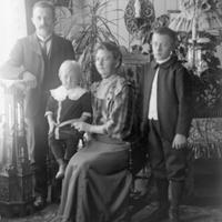Glassplaten er skannet og behandlet av Fotohuset, Drammen. Arnt ( 1878 - 1965 ), sønn av Andreas Jonassen Aaserud, fra Vestre Aaserud i Skoger. Arnt fortsatte sin fars Vognmann - og vedforretning på Rødskog. Hans hus er revet og det er bygget Aldersboliger på tomten. se bilde nr. 599.