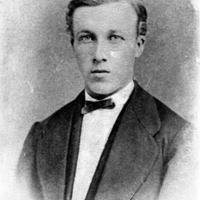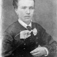 Glassplaten er skannet og behandlet av Fotohuset, Drammen. Lok.fører Andreas Nilsen Skarra, Langum f. 10.04.1859 Vestfossen d. 1935 på Langum Fru Julie Regine Sophie, f Clausen f. 13.09.1860, d 15.05.1945. Billedet er tatt i stuen på Langum. Bildet står i Skogerboka.