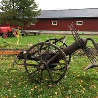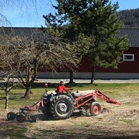 Hans Jørgen har satt ut veterantraktorene for sommeren. Når det er plenklipping må må de flyttes, så da er det fint at alle starter. Sykkelen er selvsagt også ute en tur. Steyr 1956, Massey Ferguson Gullfisk 1956, Massey Harris Ponny 1958, Ferguson Gråtass 1951, Ferguson Massey Harris Gråtass 1955, Volvo BM400 1966, MF 35 1960