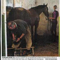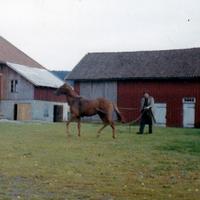 På bildet er Monna og Torill med pokalen de vant for raskeste hest i Avlsløpet på Hillestadvannet 17. mars 1962. På denne iskjøringa startet flere Skogerhester : Linnumen til Jørgen Juel, Mira Ford til Ragnar Juel, Majagutten til Arne Finsrud, Austadlilli, Sørbygutten og Lisebell til Andreas Meland.