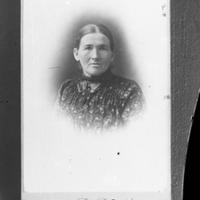Glassplaten er skannet og behandlet av Fotohuset, Drammen. Antagelig fra Vestfossen. Hun var gift med Oluf Olsen. Rolf Borge, Oddmund og Kjell Aaserud's farmor -