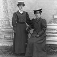 Glassplaten er skannet og behandlet av Fotohuset, Drammen. Thora og Kristi f. 1883 Gulbrandsen ( tvillinger ) Døtre av Knut Gulbrandsen i Øvre Eikerv. 41 De drev kafe på Majorstua i Oslo Bildet tatt 1905 -