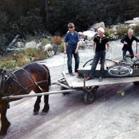 På bildet sitter Knut Ramnæs 4 år og Hans Jørgen på ryggen til Linnumen. -