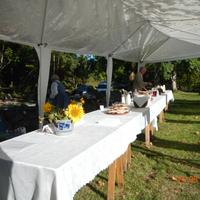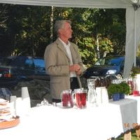 Hans Gundesø er klar med lapskaus, flatbrød og saft etter markeringen.