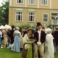 Fra skuespill fremført av Det Dramatiske Selskab (Teatergruppa til Skoger og Konnerud Historielag) på Gulskogen gård.