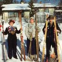 Fra venstre på bildet: kristoffer Halden, ukjent, ?? datter Guro Halden, Guro Halden. Skirenn fra Sanitetshuset på Konnerud (ca 1965).