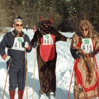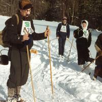 Skirenn. 1970-åra. Knut Knutsen, ukjent bjørn og ukjent.