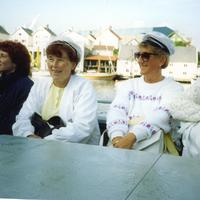 Tur til Landssangerstevnet i Haugesund. Fra venstre: Brit ? (fra Dalen), ukjent, Guro Halden, Bente Holmen, Gerd Lund.