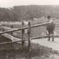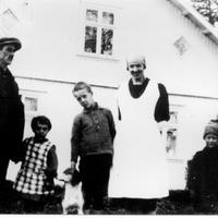 Fra v. Emma Gravdal ( Åsstuen) ,Theresa Moe, Martin Åsstuen, Karl Åsstuen, i vinduet i 2 etg.: Jørgen og Eli. Huset ligger opp for Andorsrud like innenfor Andorsrudbakken. Kjører opp ved kontorbygningen til Selvik bruk.