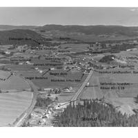 Nordbyveien og krysset hvor Nyveien (Oskar Kiers vei) går ned mot fjorden. Alleen til Store Solum nederst til høyre i bildet. Solumstua til høyre ved Nordbyveien. Huset til Lolland til høyre for Nyveien og huset til lensmann Myhre til venstre. Tankanleggene skimtes ved fjorden dt 2004