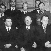Konnerud Idrettslags styre 1942: Foran fra v.: Sverre Nilsen, Aksel Amundsen, Olaf Rustand. Bak fra v.: Trygve Nilsen, Athur Kristensen, Rolf Pettersvold, Ole Karl Eskerud og Ivar Torgersen
