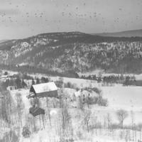I forgrunnen Gunnerud midtre gnr. 31 bnr. 1 (Brattaas). I bakgrunnen Gjerpen søndre, gnr. 29 bnr. 2 (Juelsen). Dalen nedenfor, midt i bildet, er Kobbervikdalen. Helt i bakgrunnen ses åsen mot Solum og Nordbykollen.
