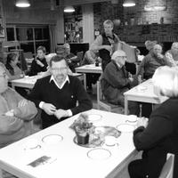 Høstmøtet 2005. Hans Chr. Elmholdt underh. med sin torader.. i første rekke. Per Runar Thoresen ,Ingar Samuelsen og Unni Samuelsen med ryggen til. Lenger bak sees Olaf Rustand, Kåre Korneliusen. NN. Egil Kristensen. Bakover sitter bl.a. Gry Strøm Andersen og Hans Myhre