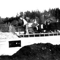 Denne sommeren var det vannmangel. Vann til støping ble kjørt med hest fra Halden , På dette bilde sees.: frav. Martinius Larsen, Harald larsen, Erling Bråthen . Arne Bjerkeseth. Denne gjengen var med å mure Oslo Rådhus.