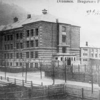 Bragernes Folkeskole ( revet til fordel for utvidelse av BBS. Sykehuset skimtes til venstre.