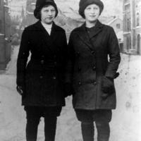 Søstrene Alma Johansen Springover ( Gomperud ) og Hilda Gomperud fra Konnerd i byen en vinterdag.