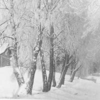 Rimfrost i de hundreårige træe. Kort skrevet 07.01.1917 av Ragnhild Barlag