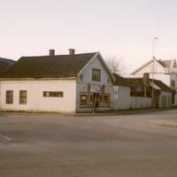 Thonhjørnet - Bakeriutsalg. Det gamle bakeriet brandt i april 1959. Der hvor plankegjerdet går lå et hus hvor Per thon bodde. En herrefrisør, Reidar Holt. En skomaker, Henrik Gulbrandsen. Noe av murveggen etter brannen i 1959+ står forsatt. Meldøren synes ennå.