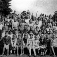 Bildet er tatt i 1955. 1. rekke fra venstre: Grete Emberland, Gerd Johansen, Birgit Johnsrud, Torill Larsen, Toril Anderson, lærer Margit Brattås, lærer Andreas Ertzeid, Liv Anderson, Inger Karin Johansen, Klara Langvasbråten og Tone Horgen. 2. rekke: Kåre Gustavsen, Johnny Kortvedt, Tor Bjørnerud, Ivar Tjugum, Arve Hoven, Per Heggbom, Liv Kristiansen, Gerd Karlsen, Evy Steen, Eva Kristiansen, Anne Fjære, Arve Syvertsen, Knut Lehn, Kåre Edmund Kristiansen og gutt ukjent. 3. rekke: Rudolf Johnsen, Åge Johan Ramsfjell, Svein Bjørnerud, John Johnsrud, Knut Engeland, Kjell Jan Gustavsen, Arild Johansen, Astrid Grøtterud, Betty Lübeck, Randi Hansen, Britt Fjære, Ingeborg Kortvedt, Terje Hindhamar, Harald Bråthen, Kristian Tjugum, Håkon Breda Ruud, gutt ukjent og Anders Espedokken. 4. rekke: Svein O. Steen, Vidar Sundberg, Dag Bomann, Terje Sandbeck, Oddvar Johansen, Tore Hoven, Berit Danielsen, Jorunn Johnsen, Astrid Bråthen, Svanhild Sandbeck, Inger Lise Hansen, Turid Kjellevold, Eli Karin Horgen, Oddvar Hansen, Jan Hagen, Asbjørn Tørvi og Einar Johansen. Se artikkel i Historielagsnytt nr. 1 side 11 fra 2006.