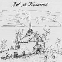 Konnerud gamle skole som motiv til Julemerke til Lions 1989 -