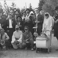 I Svingen ved Konnerud Skole. Fra v.: Kåre Gulhaugen, Torbjørn Nyborg, Torleif Kristensen, Thorbjørn Tolefsen, Hartvig ?. Nils Blixrud, Åge Ravn Hansen, Ragnar Thommassen, Per Tolefsen, Odd Karlsen, Arvid Nordal, Egil Torgersen, Oddvar Warhuus, Egil Kristensen .. Med flere.