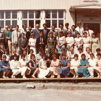Avslutning av skoleåret 1983 ved Konnerud Skole juni mnd. Alle lærere og kontordamer med rød rose flytter over til ny ungdomsskole - Svendsedammen på Konnerud. Frem til dags dato har Konnerud Skole vært 1-9 skole og nå blir den ren barneskole. 1.rekke f.v: Åse Arnslet, 2.rekke f.v: Bente Elisabeth Karlsen 3.rekke f.v: Edvind Sandsleth m/rose Jorid G. Sandsledt m/rose Sigrund Freng Ann Karin Scholden m/rose Marit Weel Anne Lise Alvik John Laukli ny rektor v/Svensedammen Julie Karin Hammer Gerd B. Michelsen Bente Bottegaard ? Grete B. Larsen m/rose Mary-Ann Pedersen m/rose Liv Myrseth Knudsen Inger Skurdal Tone Ultvedt-Moe m/rose Anna Hustad m/rose Ellen Oseland m/rose Reidun Evensen kontor v/Svensedammen Lita Jørnsen Arvid Nævra rektor v/Konnerud Eva Hafnor kontor v/Konnerud Liv Lyng m/rose Elisabeth Liverud m/rose Else Margrethe Hafredal Turid Willassen m/rose Åse H. Lyhmann Blixrud m/rose Toril Rygh m/rose Torunn H. Hustvedt m/rose Kari Haug Anbjørg Laukli Marit Nævra Else Kirkhorn 4.rekke f.v:Bjørn Andersen m/rose Henning Gaarder m/rose Dag Nordahl-Olsen m/rose Egil Myhre m/rose Sturle Salvesen m/rose Yngve Greni m/rose