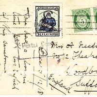Bildet er fra like etter 1900 årskiftet. Da ble hotellet drevet som et Sanatorium.På veien opp mot hotellet ser v i 2 distingverte herrer som spserer- den ene med stokk. Gjesten har sendt kort til Suffolk i England julen 1918. På alternativt bilde ser du tekstssiden. (Se alternativt bilde som viser tekstsiden) Se omtale av Turisthotellet på bilde nr 43.