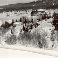 Gården Løyse i bakgrunn. Huset i forgrunn tilhørte Simen Horgen (1906-1977). Han var gift med Klara f. Dyrhaug (!907-2000). De fikk to barn Eil Karin f. 1942 og Tone f. 1946. Simen Horgen var en dyktig kunstmaler. Han har blant annet laget maleriene i både Skoger og Konnerud kapell. Han drev også en tid snekkerverksted med produksjon av dører og vinduer. Snekkerverkstedet er ombygd til bolighus. Jarlsbergveien 560.