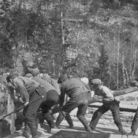 Fløtegjeng ved Majordammen. Blant "gutta" her så ser en at det er med en dame.