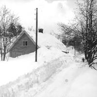 Endestasjon for posten i Stubberudveien hvor postmester Kristen Tveten bodde. I huset til venstre med valmet tak bodde tidligere familien Glundberg og Per Isaksen gift med postmesterdatter Annie Tveten.