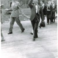 Torfinn Bøe med studenterlue og Olaf Haveråen som vinker.