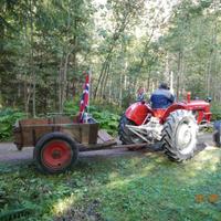 Denne traktoren, l956 modell Steyr, diesel, var med på Røysjø i jobb med vannrør for Skoger Kommune i 1957-58. Vannrøret på 6 m skulle legges fra tunnelåpningen mot bygda og ned i Langvannet. Dette vannrøret ble bygd sammen av 2x4 plank (som en silo). De plankene ble kjørt fra Veslevannet og inn til Furuholm. Det var ikke vei der, så de kjørte på isen på Langvannet Jørgen Christoffer Juel på Lindum (f. 1912) eide og kjørte den på denne jobben. Her er det hans oldebarn Jørgen Christopher som kjører Steyer'n. Bak kommer hans far Pål Jørgen på Ferguson 35 1956 modell.