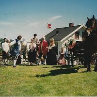 Tekst: Per Runar Thoresen Det Dramatiske Selskap spiller skuespillet "Konnerudverket i nød og lyst" ved Gården 1988. Kong Fredrik V og Greven anno 1749. Forfatter Goro Halden