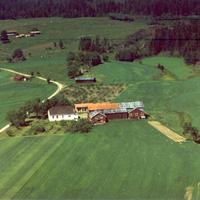 Manskap for skjæring av tømmer. Fra v. Sigurd Eriksen - Kåre Larsen f. Foskollen. - u - Halvor Skjeldrum ( kantmester ) - Karl Larsen - Harald Springover Johansen Det var så lite strøm på den tiden at de måtte skjære tømmeret om natt for at bøndene skulle strøm på dagtid.