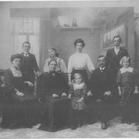 Lars Nilssen Meland (1864 - 1920) og hans kone Gyda Meland (f. 1866) med sine barn. Bildet er tatt ca. 1910. Fra venstre bak: Andreas (f. 1895), Synnøve (f. 1893), Sigrid (f. 1889) og Anders (f. 1890) Fra venstre foran: Ingvald (f. 1900), Ragnhild (f. 1898), Gyda, Gudrun (1904 - 1918), Lars, Anna (1902 - 1929) og Nils (f. 1887). Nils var sønn av Gyda og Anders Meland som var bror av Lars Meland. Lars giftet seg med Gyda etter brorens død. Lars Nilssen Meland kom fra Balestrand i Sogn og kjøpte Gunnarsrud i Skoger i 1901. Ytterligere opplysninger om familien finnes i Skogerboken som ble utgitt i 1931.