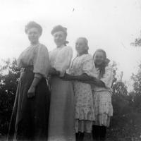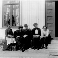 Fra v.: Hanna Hafslund, søster av Marthine Bjerknes. Ingeborg , Alf, Karen og Ester Bjerknes, på Stormoen