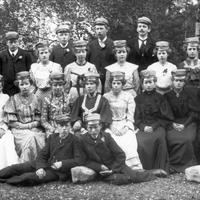 Sangkoret. Foran sitter Harald Gulbrandsen v. og Harry Nicolaysen h Foreste rekke fra v: Klara Johannesen - Betsy Moen - Inga Aaserud (g. Olsen ) ukjent,- Marthine Brekke (g. Burud )- ukjent - ukjent Kristiane Langum - ukjent - ukjent -. Mitterste rekke fra v: Ukjent - ukjent - ukjent - Gustava Gulliksen ( g. Olsen ) - Herborg Langback - Helga Christensen - Trogstad. Bakerste rekke fra v. Arne Gulbransen - Hans Charlsen - Arnt Aaserud - ukjent.