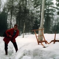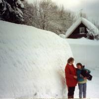 Toril Naper Hauge og datter Elin en marsdag i 1985 ved oppkjøringen til Stubberudv. 126a