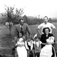 Barnedåp: Bak t.v. og ned: Øyvind Rustand, Ragnhild Rustand (f. Gomperud), Randi m/dåpskjole, Trond (bror til dåpsbarnet) Bak t.h. og ned: Olaf Rustand, Kari Rustand (f. Prøis), Jon m/dåpskjole, Liv (søster til dåpsbarnet) Barnedåpen ble holdt på Konnerud hvor de bodde Kari og Olaf Rustand bodde i 2.etg. hos Oskar Stubberud. Brødrene Olaf og Øyvind kommer fra en stor gård i Hof (Vestfold) Gårdens navn var RUSTAND.
