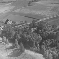 Hans Unelsrød. Alle bolighus hvite. Alle uthus røde med hvite lister og glugger. Alle tak med rødbrun tegelsten. Veien på skrå over bildet er Unelsrødlina