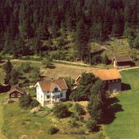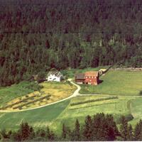 Det hvite huset midt på fotoet er Løkka. Foran til h.: Bråthen