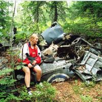 Flyvraket på Slåttsmyråsen innenfor Vassmyr Venche Østbye fra Gulskogen foran vraket.
