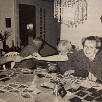 Fotokomiteen i arbeid, her 16. mars 1988 hjemme hos Anne-Lise Møller Nilsen. Fra venstre: Åse Tandberg, Toll Tollum, Anne-Lise Møller Nilsen og Helge Furuvold.