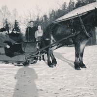 Hesteskyss med kurvslede på Øvre Knive. Ukjent år.