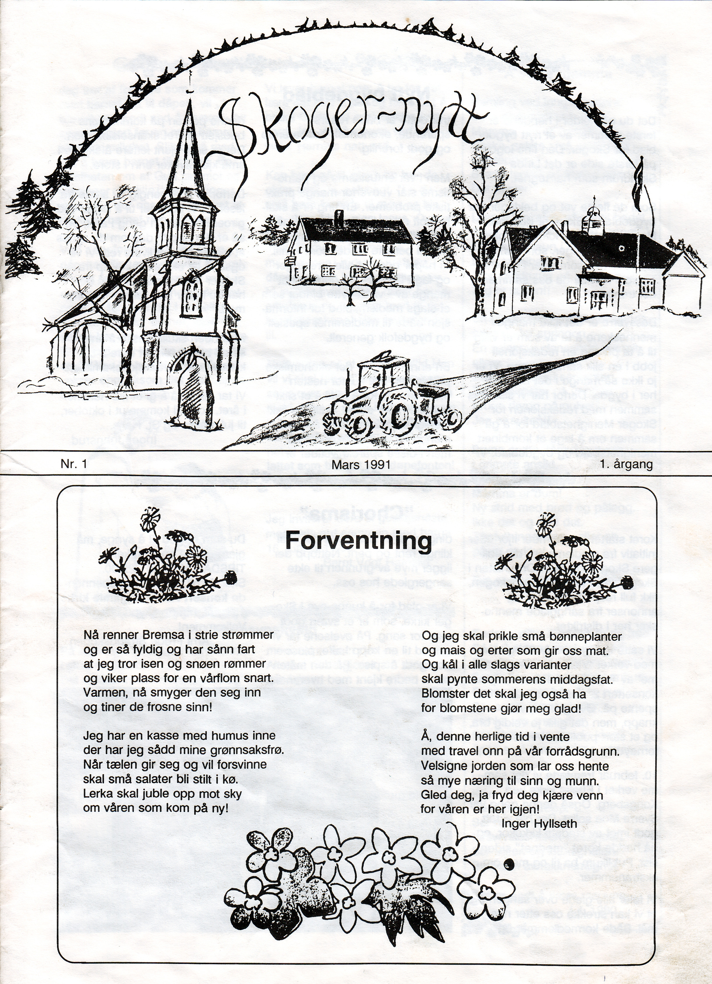 Bygdebladet "Skauger" har gått inn. Disse i redaksjonen : Lillemor Borge, Hanne Fretheim, Magnhild Gundesø, Ellen Hagen, Inger Johnsrud, Rolf Madsen, Turid Nilsen og Bernt Vogt Ramslie slo seg sammen med redaksjonen for Skoger Menighetsblad for å gå sammen om å lage et kombinert menighetsblad og bygdeblad.