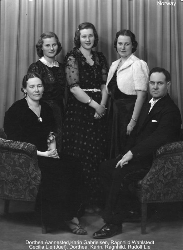 Mor Cecilie Lie, Dorthea Aanestad, Karin Gabrielsen, Ragnhild Wahlstedt, far Rudolf Lie Cecilia er datter av Dorthea Elise og Erik Christoffer Juel d.e. på Lindum