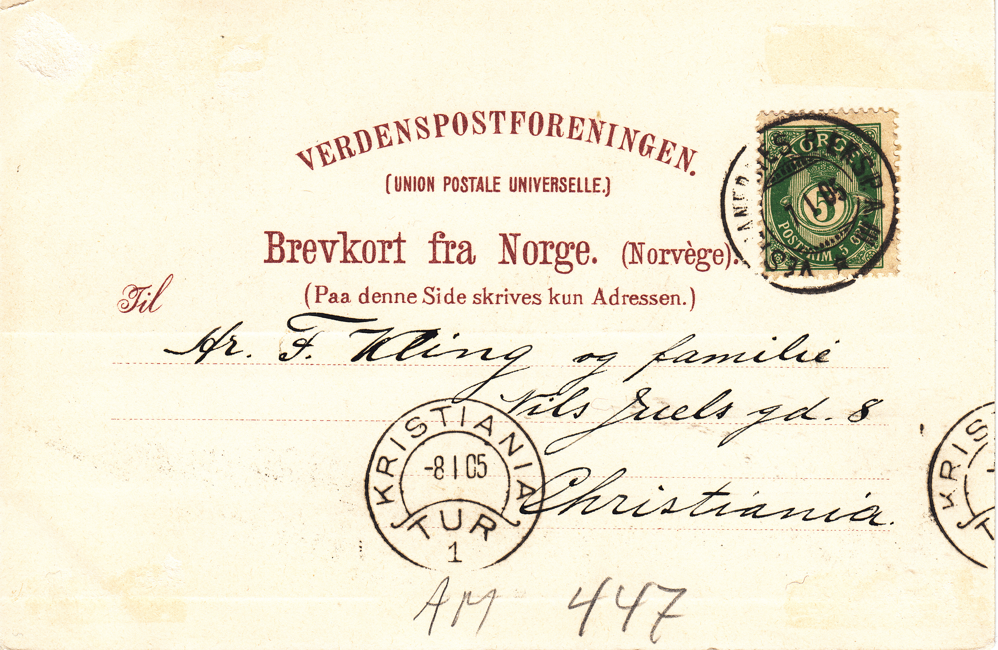 Fint vinterbilde av KonnerudkollenTuristhotell som på denne tiden var drevet som et Sanatorium. Hotellgjesten har sendt kort til Christiania (Oslo) i januar 1905 (På alternativt bilde ser vi baksiden av kortet) Mer info om hotellet finner vi på bilde nr. 43.