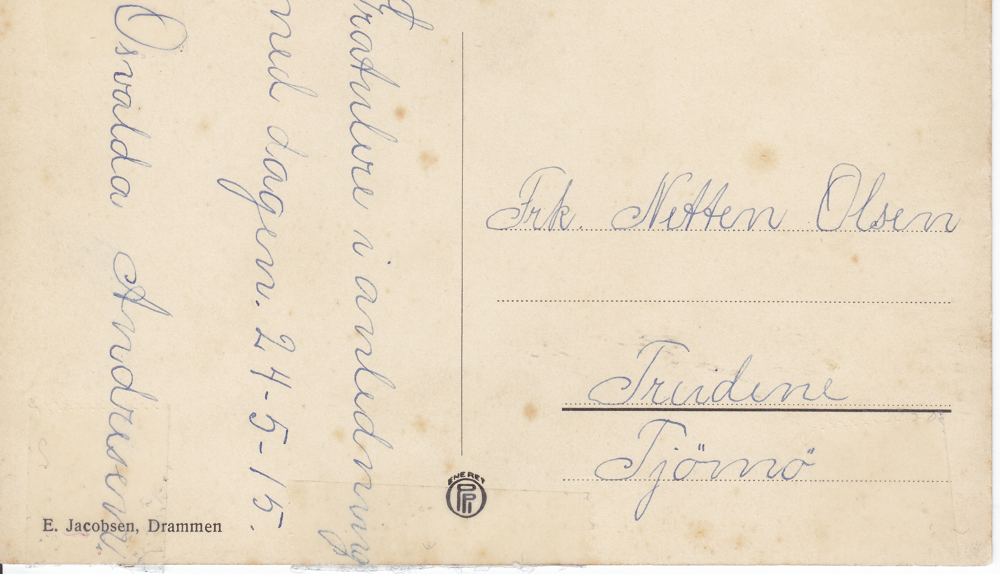 Utlånt av Tor Alf KristiansenTekst: Per Runar Thoresen Postkortet er en del av en samling som ble kjøpt av Skoger og Konnerud Historielag i januar 2017.