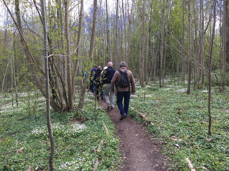 Vi gikk i nydelig hvitveisterreng til gravhaugene.